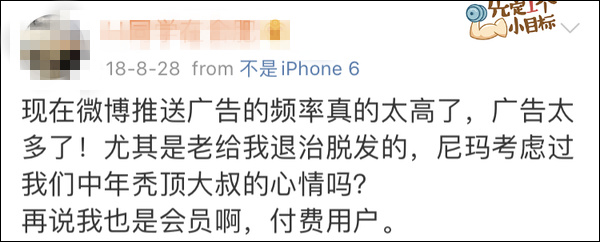 往下一翻,有不少網友吐槽微博脱髮廣告太多。