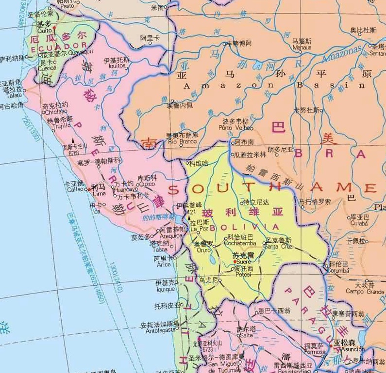 此次飛行涉及到的南美國家:秘魯、玻利維亞、巴拉圭、巴西、厄瓜多爾