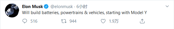 馬斯克表示,歐洲工廠將生產電池、動力系統和整車,首款車型將是Model Y