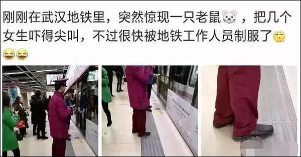 據楚天都市報2月24日報道,今年2月23日,武漢地鐵2號線中南路站內,一隻突然竄出的小老鼠嚇得女乘客連連尖叫,最後被地鐵工作人員踩住了尾巴。