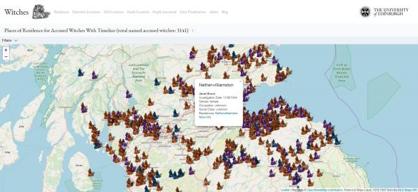 愛丁堡大學女巫研究項目的交互式地圖可查詢受迫害者的個人信息