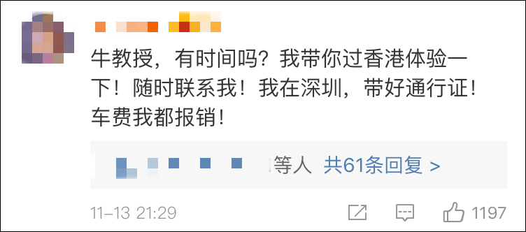 網友也都怒了:請牛教授前往香港,親眼看看暴徒的行徑!