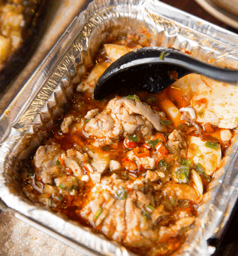 舀上一口,滑嫩的腦花絲毫沒有顆粒感,像是含着一口緊密的鮮汁在舌尖慢慢融化。待得這口絲滑入肚後,舌尖餘留的兇猛麻辣,瞬間點燃體內的血液,味蕾的刺激波濤洶湧,是讓人無法抗拒的鮮活。