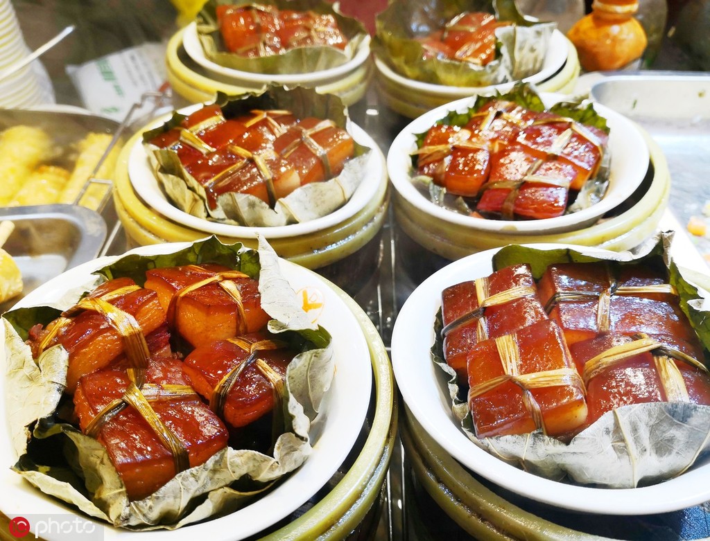 在江西樂平,這道裹着時光味道的佳餚,更是親人年節團聚的象徵。將一個完整的豬頭,用木質的大蒸籠蒸熟後,全家圍坐在一起,用刀將臘豬肉一塊一塊剝開,用手抓食,是樂平人歡度元宵的傳統習俗。