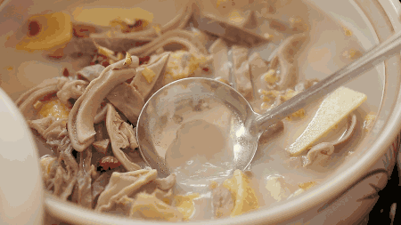 豬肚湯,是潮汕人對豬下水的想象力大作。如果你在廣州開往潮汕的高鐵上,遇到拎着動物內臟的人,請不要慌張,這或許只是某個潮汕孩子,給母親“代購”的新鮮豬肚。潮汕人太愛吃豬肚了,也因此導致潮汕的豬肚經常供不應求,往往價格也比其他地方貴上兩三倍。