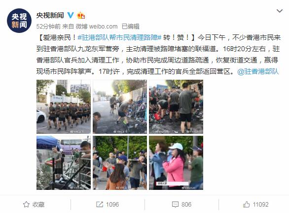 據@央視新聞 11月16日消息,今日下午,不少香港市民來到駐香港部隊九龍東軍營旁,主動清理被路障堵塞的聯福道。16時20分左右,駐香港部隊官兵加入清理工作,協助市民完成周邊道路疏通,恢復街道交通,贏得現場市民陣陣掌聲。17時許,完成清理工作的官兵全部返回營區。