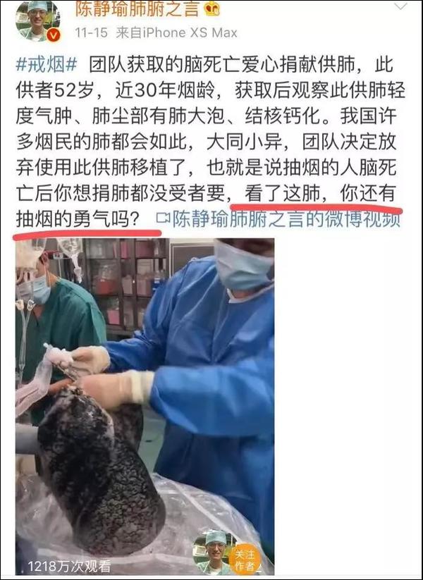 著名肺移植專家陳靜瑜教授在微博發佈了一則視頻,點擊迅速突破1218萬: