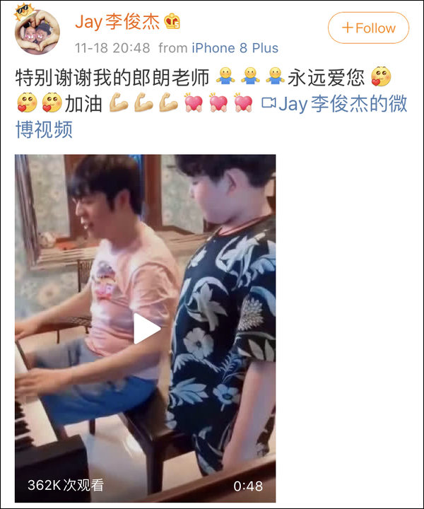 而郎朗魔性教學真正的對象李俊傑@Jay李俊傑 也在微博回應了網友的關心:謝謝大家對我的喜愛與鼓勵,我會繼續努力加油的。
