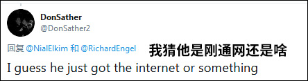 更多的網友通過留言開始給恩格爾“補課”,試圖喚醒這位NBC首席駐外記者。“醒醒啊兄弟,我們從20世紀50年代開始就是壞人。”