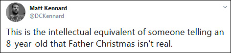 “這就相當於有人告訴一個8歲的小孩子,聖誕老人不是真的。”