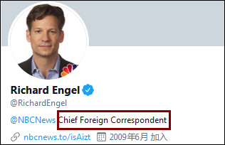 恩格爾推特簡介顯示,他是NBC新聞首席駐外記者