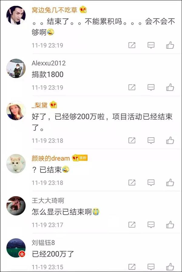 昨晚11點多,該募捐項目“已結束”。