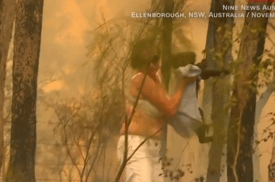 澳大利亞在“燃燒”,女子衝進大火救下一隻考拉