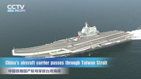 我海軍首艘國產航母攜帶艦載機通過台灣海峽