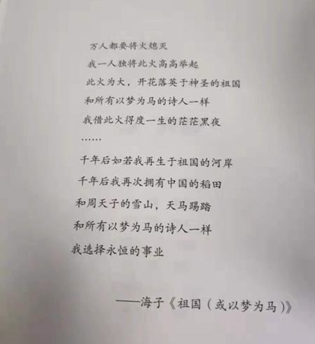 《龍興》扉頁的海子《祖國(或以夢為馬)》