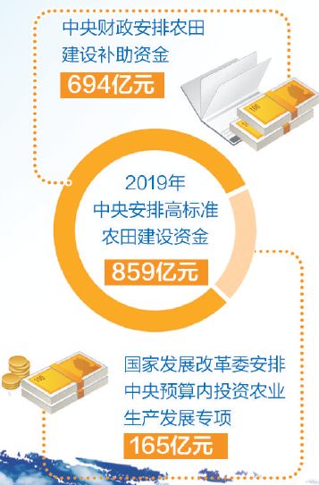 據介紹,財政部已整合完善中央財政投入機制,會同農業農村部整合設立農田建設補助資金,支持高標準農田及農田水利建設。2019年,中央安排高標準農田建設資金859億元。其中,中央財政安排農田建設補助資金694億元,國家發展改革委安排中央預算內投資農業生產發展專項165億元。今年10月,中央財政已提前下達2020年農田建設補助資金預算616億元。