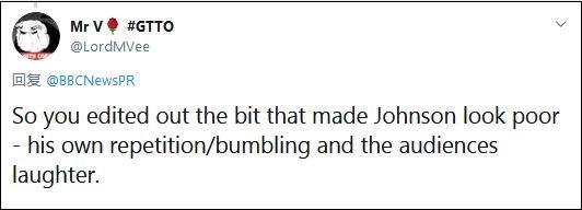 “23日中午的視頻,因為時間原因被縮短了,剪掉了約翰遜的重複話語。然而,這麼做了以後,我們同樣剪掉了觀眾的笑聲。儘管我們絕對無意誤導,但承認這是我們的錯誤。因為這沒有完全反映出(觀眾)對鮑里斯·約翰遜回答的全部反應。”