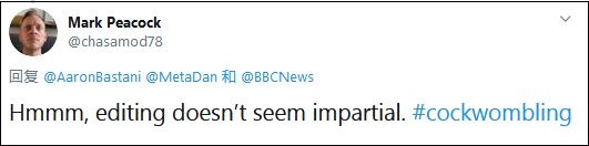 當然,在這一剪輯被人指責以後,BBC起初表示,編輯視頻是出於時間原因,但並未道歉。隨着輿論的擴散,BBC 25日終於發表聲明,承認錯誤,並撤回視頻。