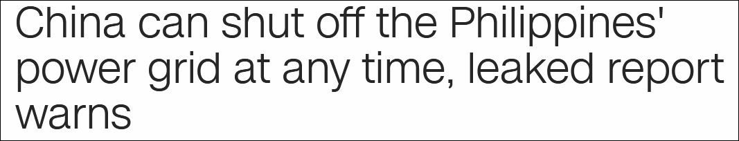 本月中旬,有菲律賓政客腦洞大開,稱中國可能“遙控”菲律賓供電系統。隨後,美國有線電視新聞網(CNN)煞有介事地拿出一份“泄露的報告”,繼續炒作中國“可關閉”菲律賓電網一事;還帶上華為,稱該國電網技術已越來越依賴華為產品。