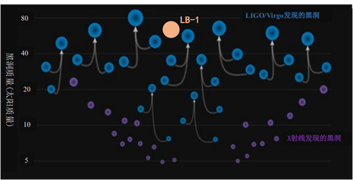 LB-1和引力波併合事件、X射線方法發現的黑洞的質量分佈