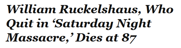 而時任副司法部長的威廉·洛克肖斯在成為司法部負責人後,尼克松又命令他開除考克斯,洛克肖斯也選擇辭職來抗議尼克松濫用職權。