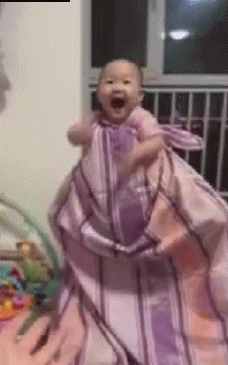 一位爸爸給孩子做了一個真人“不倒翁”,他拿被子做了裙子,讓女兒騎在他的頭上。
