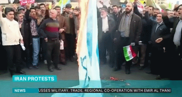 支持政府者焚燒以色列國旗 視頻截圖:TRT news