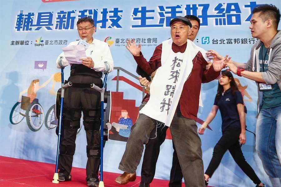 據台灣“中時電子報”28日報道,今天上午台北市政府舉辦“身心障礙者表揚活動”,柯文哲在台上致辭,進行到一半時,某“台獨”組織創始人王獻極身穿“柯來踹我”的布條,“突襲式”衝上台,並大喊“來踹我啊”,隨後遭到警察驅離。