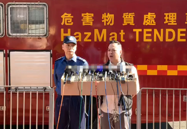香港警務處助理處長週一鳴及消防處副消防總長黃鎮業會見媒體 香港警方臉書直播截圖