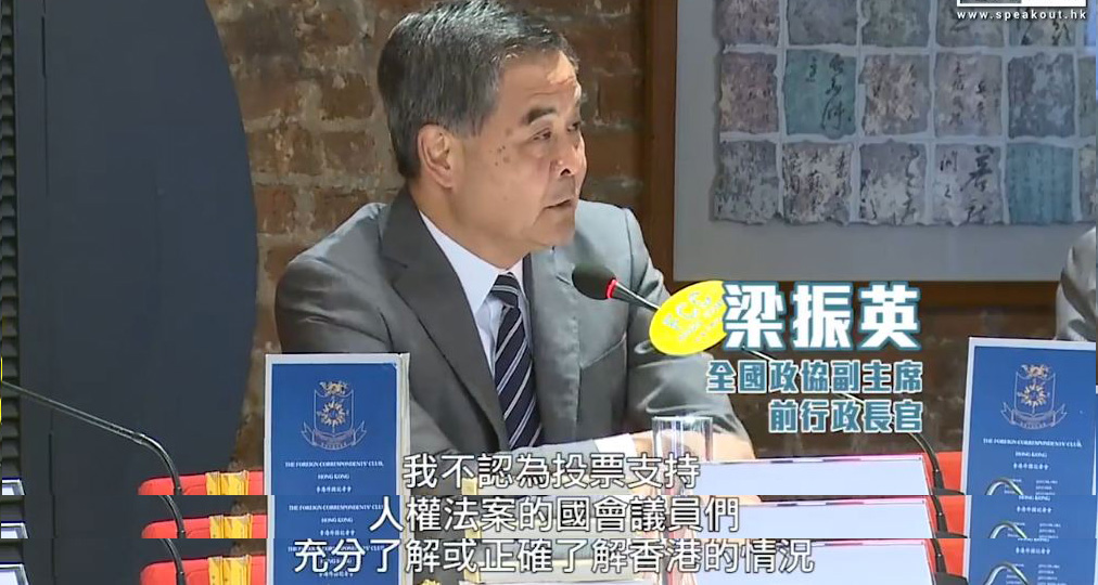 當天適逢美國總統特朗普將所謂“香港人權與民主法案”簽署成法。據香港“橙新聞”28日報道,梁振英在談到此事時表示,自己認為投票支持所謂‘人權法案’的國會議員們,並沒有充分或正確瞭解香港的情況。
