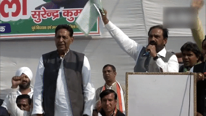 據《今日印度》報道,12月1日,印度首都新德里。印度前邦議員蘇倫德爾•庫馬爾在集會上高呼口號。