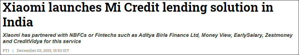 根據《印度經濟時報》報道,小米信貸在2018年5月就已在印度預熱。不過,這項業務當時僅對小米MIUI用户開放。