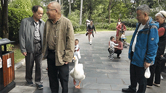 如果你足夠幸運,你也可以像新聞裏的大爺一樣,實現出門遛大鵝的夢想。柳州大爺黃作賢和公園裏的大鵝小白是十多年的好朋友,每天大爺來公園,只要大爺一叫,小白就會從水裏出來,跟着他一起遛彎散步,成為公園裏的獨特一景。
