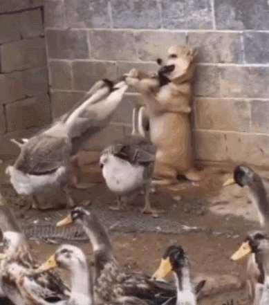 哪怕狗子身邊有主人護着,大鵝並不把主人放在眼裏,連人帶狗,一鍋端。假如大鵝趁你不注意,跟你家狗掐起來了,你還不能坐視不管,勸架還勸不住。