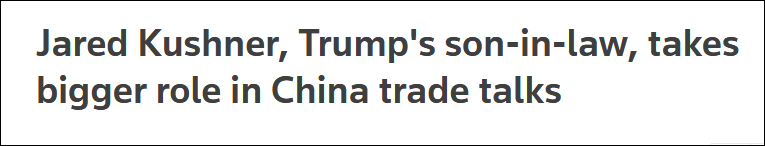 白宮證實,美國“第一女婿”庫什納加入中美貿易談判