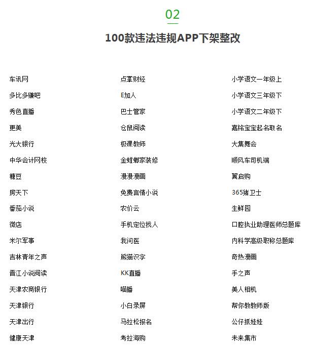中新經緯客户端12月5日報道,據國家網絡與信息安全信息通報中心日前通報,11月以來,公安機關已查處整改100款違法違規APP及其運營的互聯網企業,10款被罰款,27款被責令限期整改。通報顯示,上述違法違規APP涉及微店、點掌財經、光大銀行、房天下、晉江小説閲讀、豬八戒網、樊登讀書等。