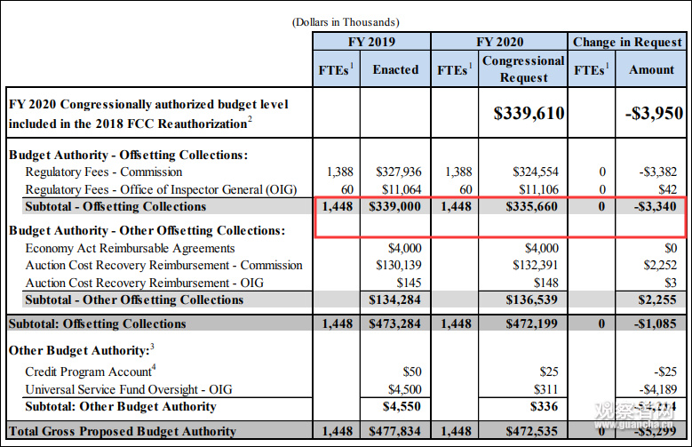 而從FCC本財年申報的聯邦預算來看,該機構於2020財年預算比2019年少1%——近三年來呈逐步減少的趨勢。特朗普方面則要求美國法院賦權FCC收取頻譜費用,若2020年獲批,至2029年,FCC可從執照持有者手中收取約40億美元的收入。