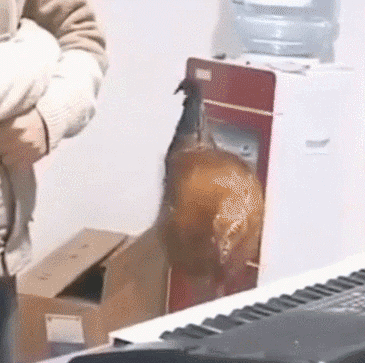 視頻中這隻公雞就正在彈《我和我的祖國》↓↓