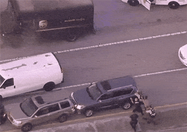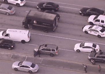劫匪隨後劫持一輛UPS快遞卡車及1名司機,沿街道與跨州高速向北逃竄,期間大批警車展開追擊。劫匪不時向警車射擊。