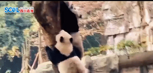 四川綿陽地震來臨瞬間,熊貓扔下竹子瞬間上樹現超強求生欲