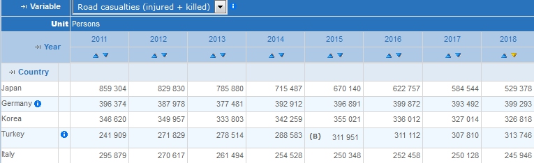 OECD統計數字也顯示,韓國道路傷亡人數在該組織中長期位居前列,即便除開美國,也只有日本、德國等人口明顯多於韓國的國家在傷亡人數上高於韓國。