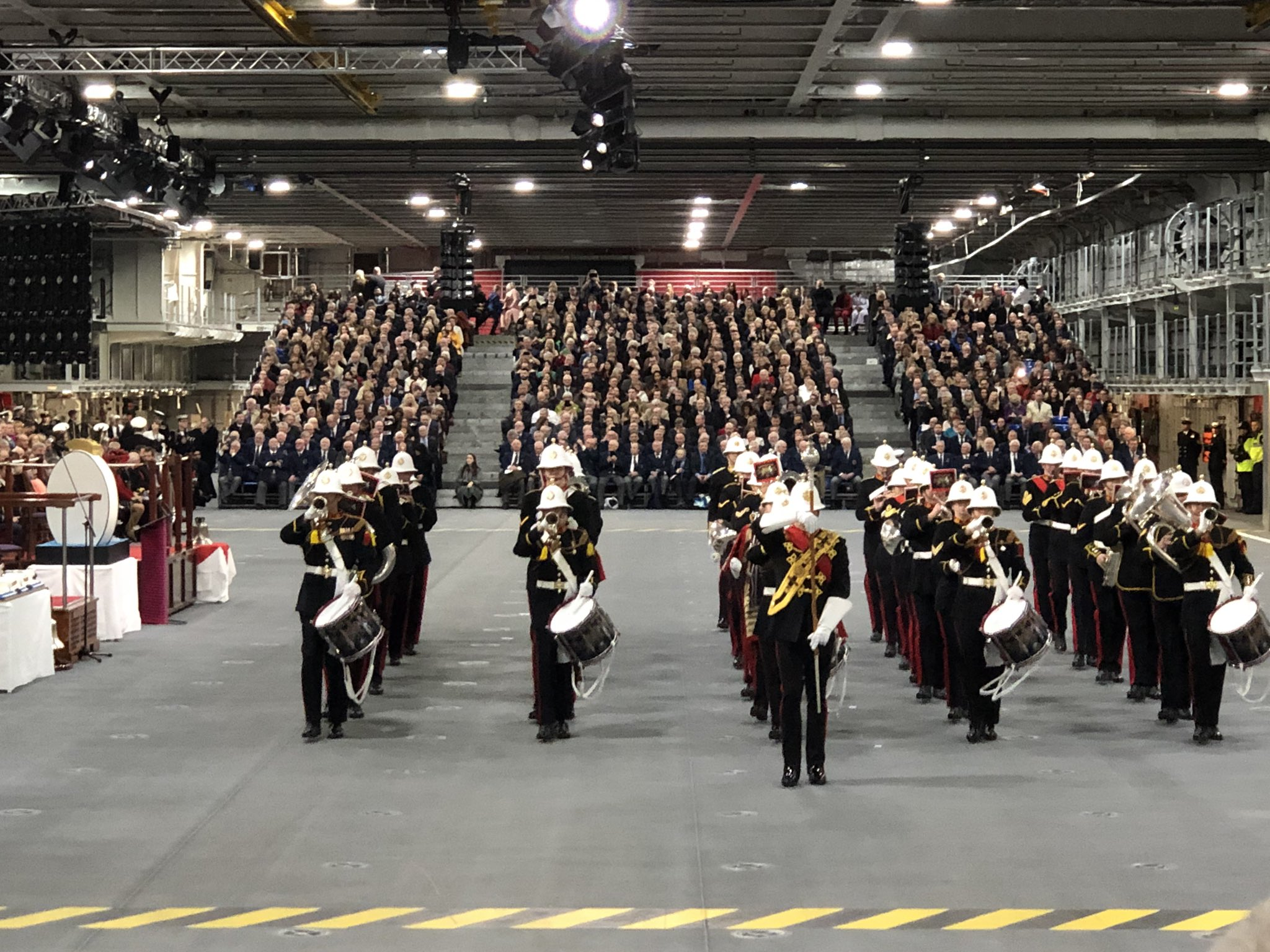 軍樂團在機庫內舉行入役儀式 圖源:英國皇家海軍