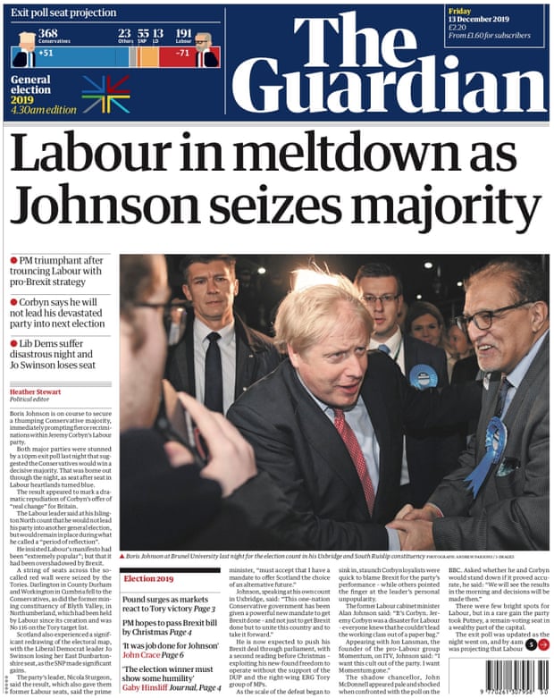 《衞報》:工黨垮台,約翰遜贏得多數席位。