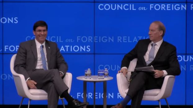 12月13日,美國國防部長埃斯珀在紐約參加美國外交關係協會就美國國防政策舉行的對話。
