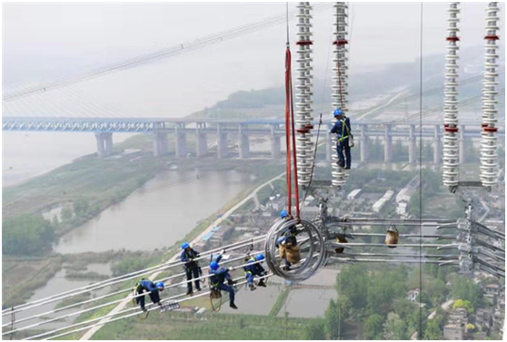 ±1100千伏準東-皖南特高壓長江大跨越工程附件安裝現場。圖源:人民網