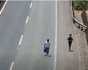 發現警情後,就近執勤民警立即驅車趕赴現場處置,當兩人發現警車靠近,就快速從高速公路橋樑排水口離開了高速。