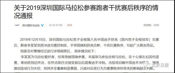 組委會已對其行為進行批評,也已將相關情況彙報中國田徑協會。同時提醒廣大跑者,熱愛可理解,表達應恰當,維護良好競賽秩序人人有責。
