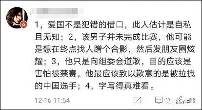而該名拽人男子在道歉信中表示,自己因為看到中國選手衝過終點,特別激動,一時衝動違犯了組委會紀律。之所以強拉鐵亮合影,是因為“熱愛國旗”“熱愛祖國”,為了“展示我們中國強大”。
