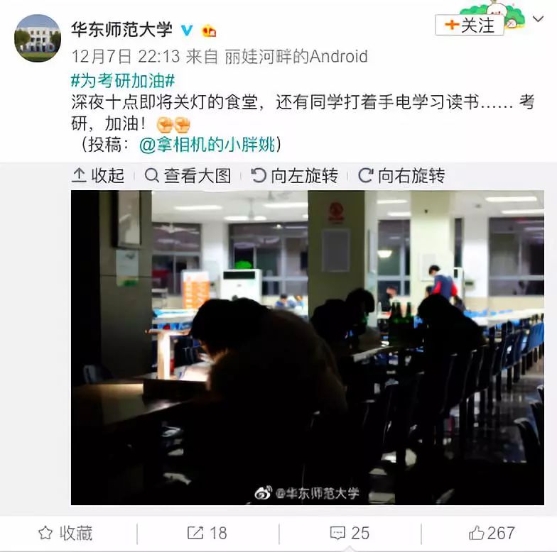 即將關燈的食堂,還有同學打着手電學習讀書;