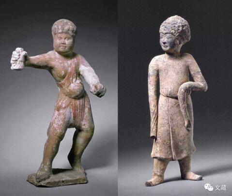 1985年在陝西省長武縣棗園鄉郭村出土一個唐代黑人陶俑,頗具異域風情,應是異域人士的造型。該俑全身袒露,身披紅色敢曼,繞雙肩至下肢,手舞足蹈,呈舞者之狀,這可能就體現了唐人印象中崑崙奴善舞的特點。